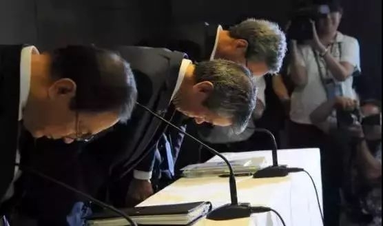 在總裁說完這一句話后,東芝道歉會臺上所有出席的高管全部站了起來,齊刷刷地低下頭,90度鞠躬,幾十秒時間一動不動。