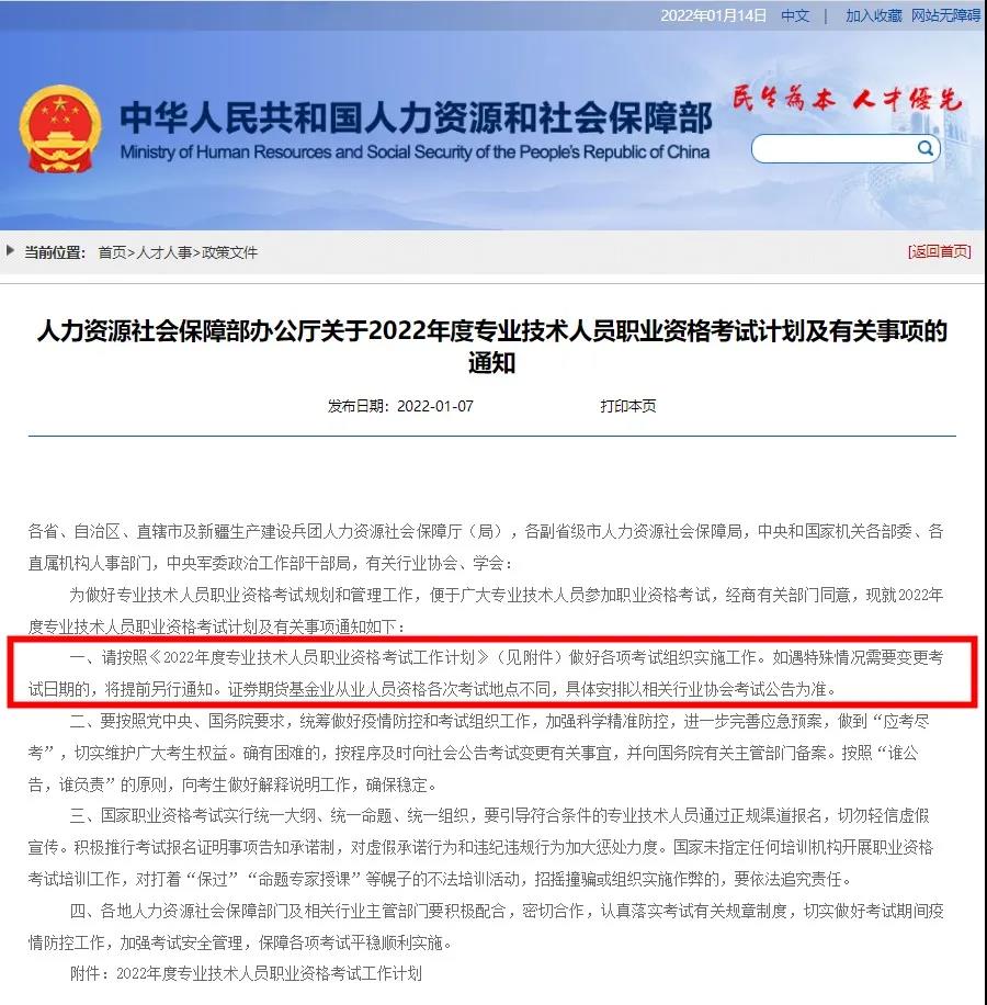 人力資源社會(huì)保障部辦公廳關(guān)于2022年度專業(yè)技術(shù)人員職業(yè)資格考試計(jì)劃及有關(guān)事項(xiàng)的通知