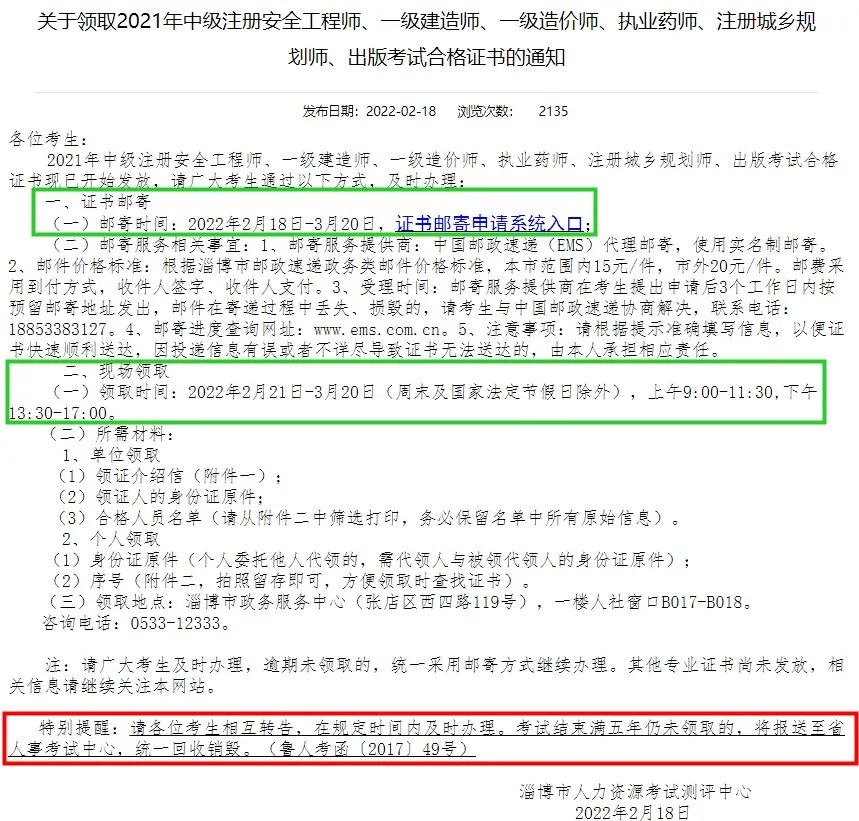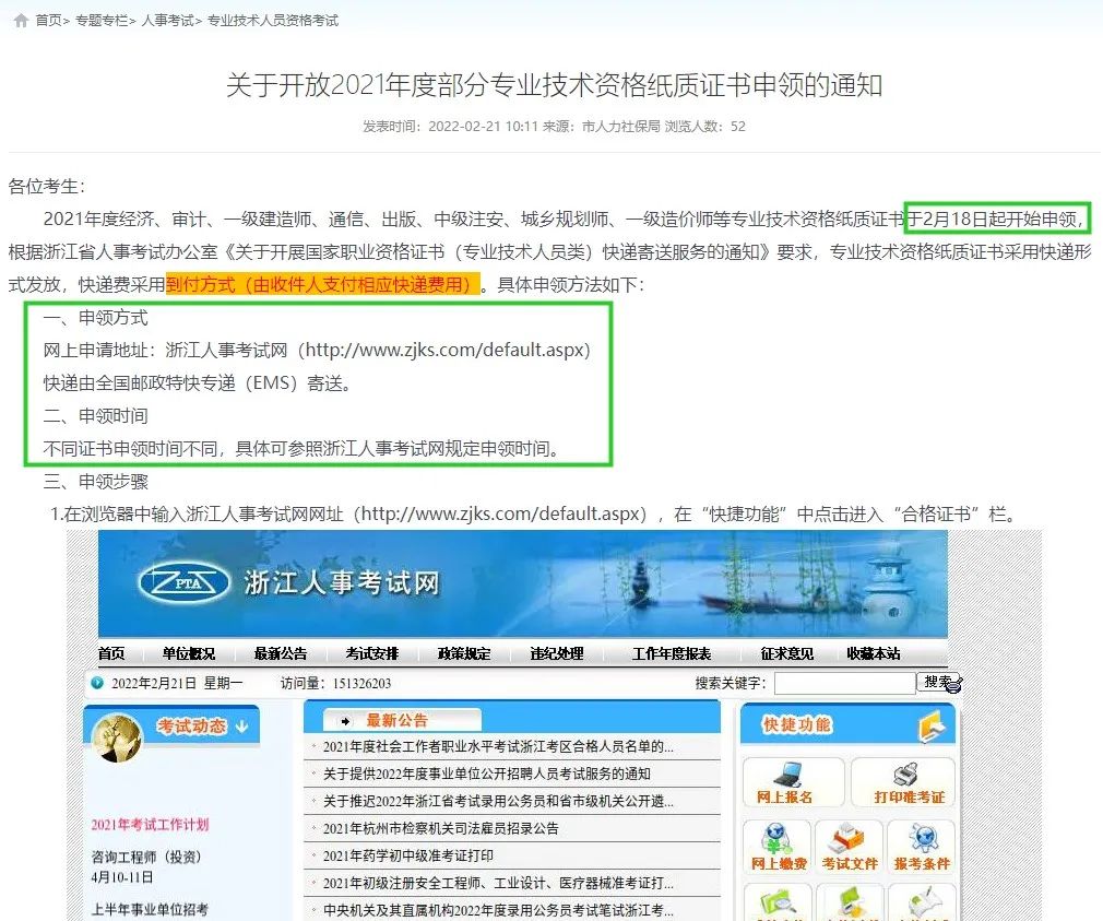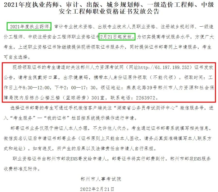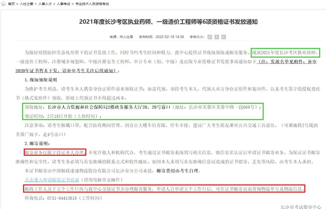 (2)株洲2月17日發(fā)通知,現(xiàn)場領取時間為通知發(fā)布之日起一年之內(nèi)領取完畢,逾期未領導致的證書遺失等后果有考生本人承擔。