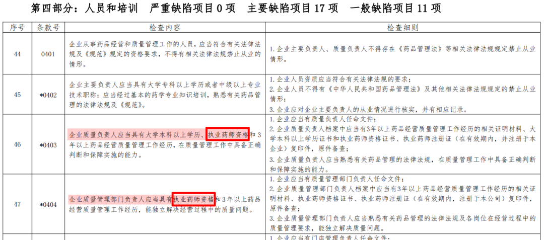 今年,四川藥監(jiān)局《藥品零售連鎖總部檢查細(xì)則》正式執(zhí)行。其中明確四川、重慶藥品零售連鎖企業(yè)的質(zhì)量負(fù)責(zé)人、企業(yè)質(zhì)量管理部門負(fù)責(zé)人應(yīng)具執(zhí)業(yè)藥師資格: