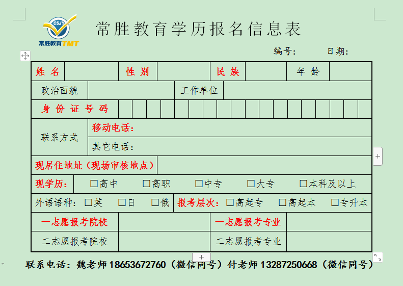 發(fā)送報(bào)名資料:身份證反正面拍照,2寸藍(lán)底標(biāo)準(zhǔn)證件照電子版,初始學(xué)歷拍照,學(xué)歷報(bào)名信息表