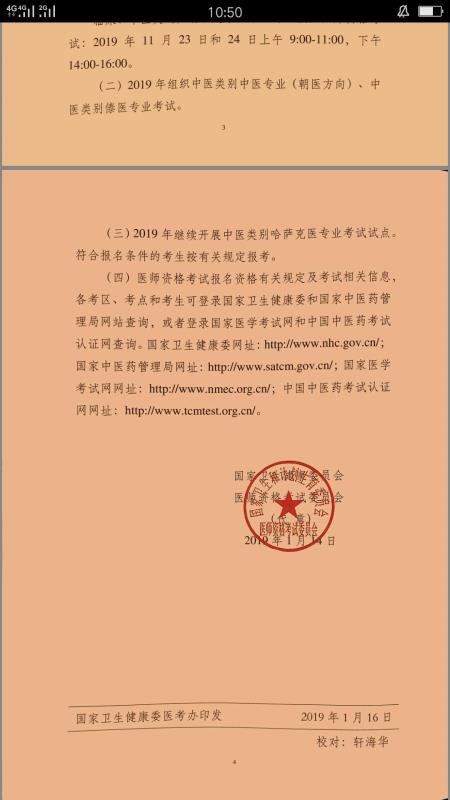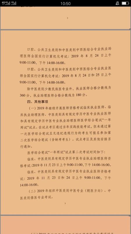 臨床、中醫(yī)類別具有規(guī)定學(xué)歷中醫(yī)專業(yè)執(zhí)業(yè)醫(yī)師資格考試:2019年11月23日和24日上午9:00-11:00,下午14:00-16:00。