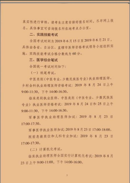 口腔、公共衛(wèi)生類別和中醫(yī)類別中西醫(yī)結(jié)合專業(yè)執(zhí)業(yè)助理醫(yī)師全國實(shí)行計(jì)算機(jī)化考試:2019年8月24日上午9:00-11:00,下午14:00-16:00。