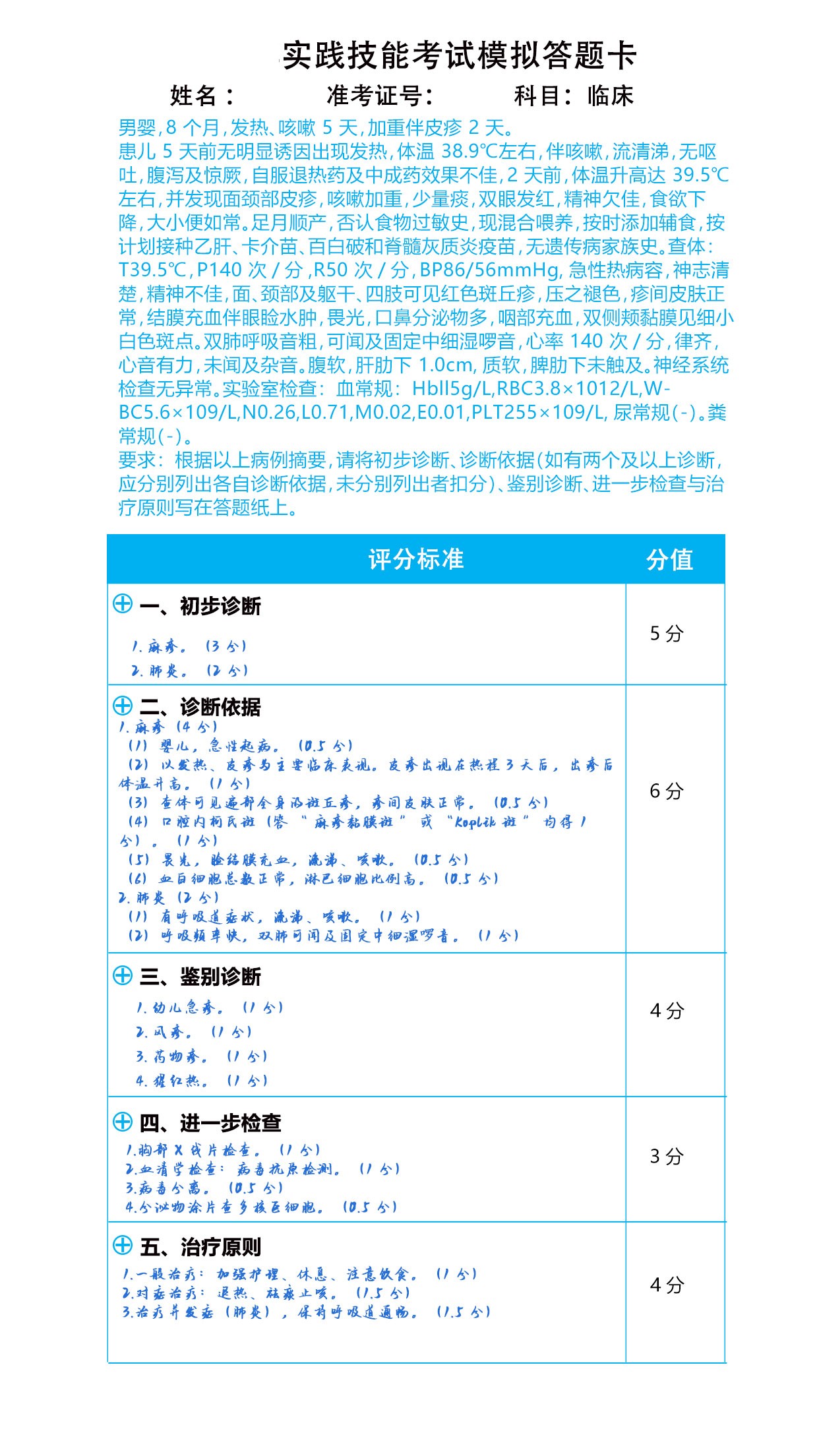 臨床實(shí)踐技能模擬答題【4.19】