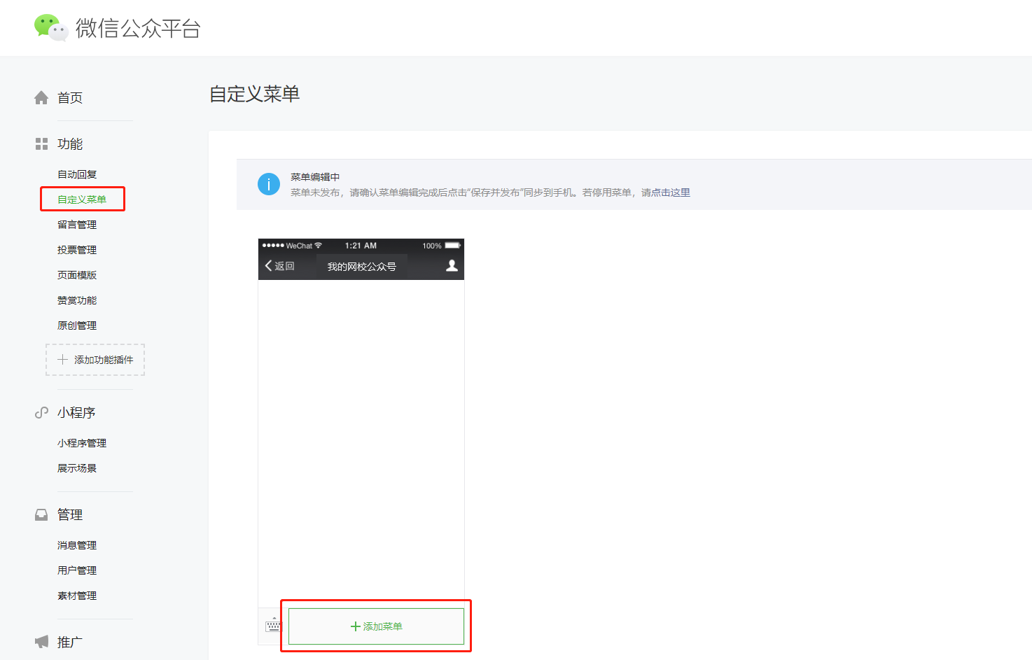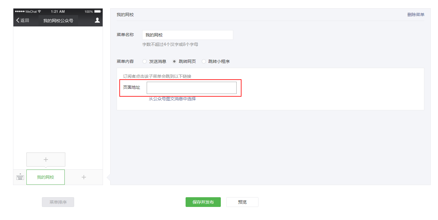 第三步:將網(wǎng)校H5首頁鏈接地址加入菜單 / 將您的網(wǎng)校網(wǎng)址加入菜單