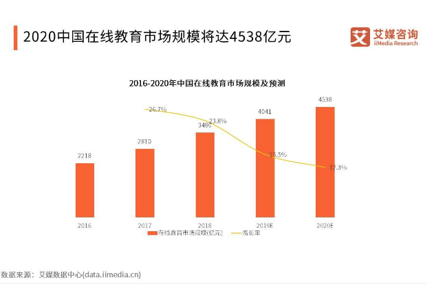 其實(shí),近些年在線教育的用戶規(guī)模已不斷增長(zhǎng)。根據(jù)艾媒網(wǎng)數(shù)據(jù)顯示,2019在線教育市場(chǎng)規(guī)模已達(dá)2.54億人,預(yù)計(jì)2020中國(guó)在線教育市場(chǎng)規(guī)模有望增至4538億元,用戶規(guī)模將增至3.09億人。如此大規(guī)模的市場(chǎng)需求,給教培機(jī)構(gòu)帶來(lái)新機(jī)遇。