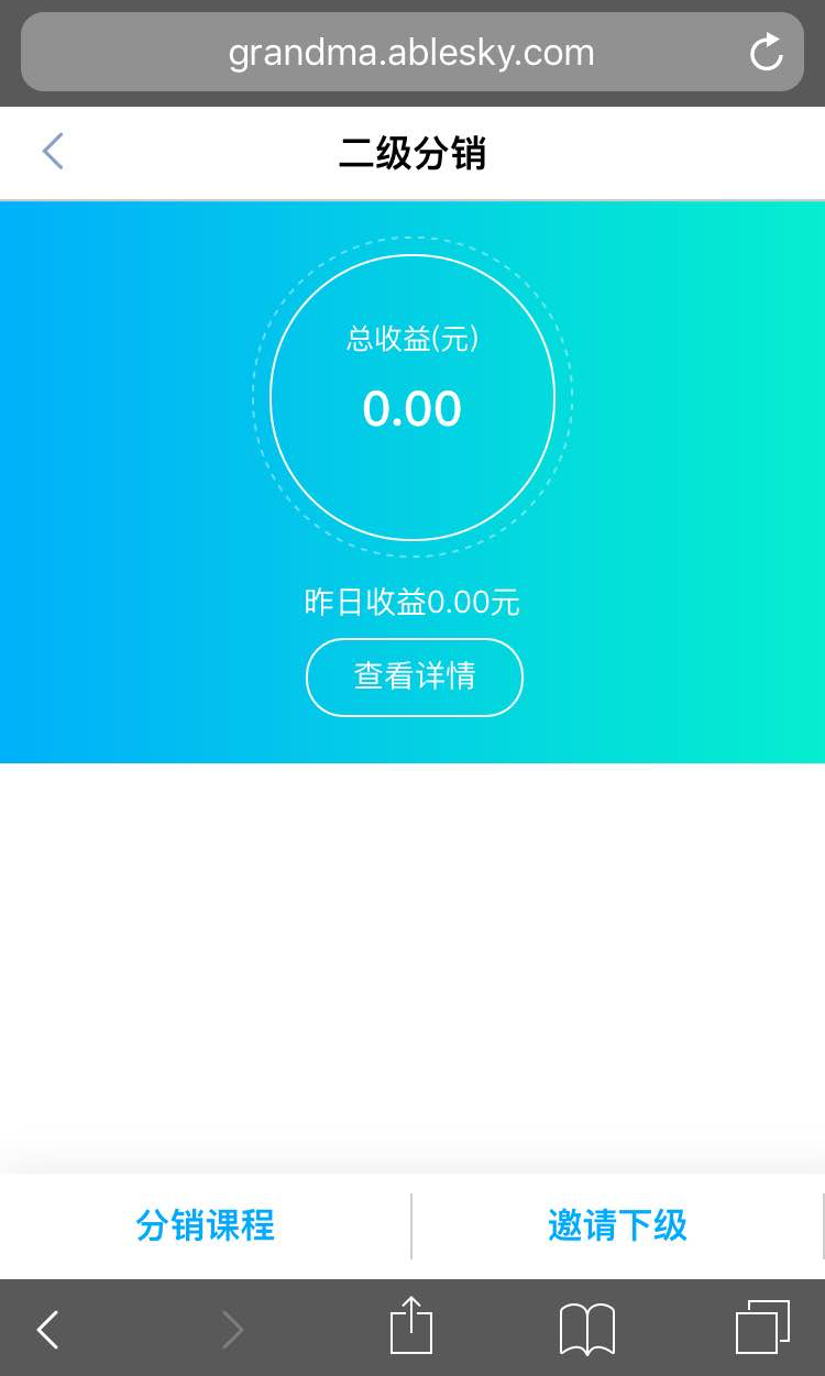 分銷員可在手機(jī)端(網(wǎng)校課堂app、定制app、H5網(wǎng)校)-個(gè)人中心-二級(jí)分銷,查看到所有可分銷的課程、自己的收益、自己的下級(jí)。