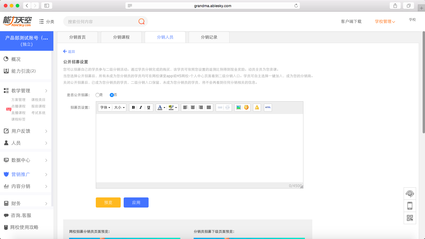 前往:分銷人員-公開招募設(shè)置,設(shè)置自己的H5招募頁(yè)。