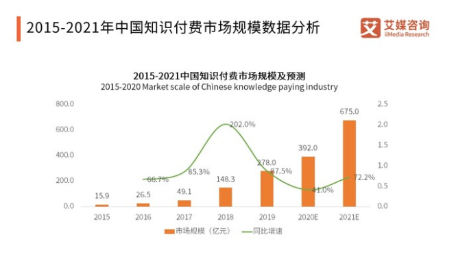 根據(jù)艾媒數(shù)據(jù)顯示,2019年,我國知識(shí)付費(fèi)行業(yè)用戶規(guī)模達(dá)3.6億人,行業(yè)市場規(guī)模達(dá)278億元。