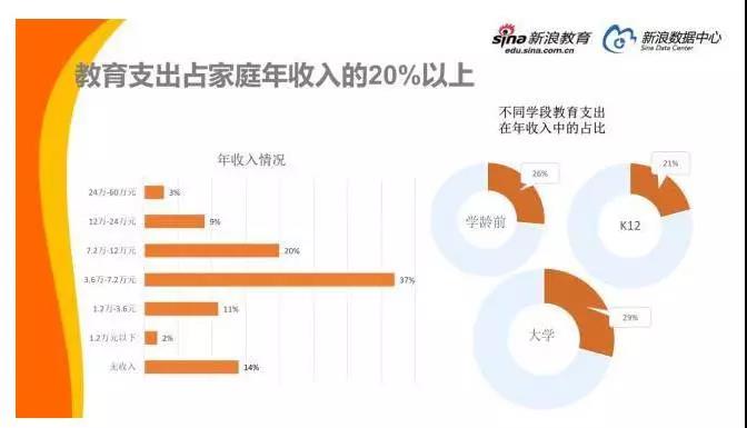 中國家庭非常舍得在教育上花錢,教育支出占家庭年支出的50%以上。50%的家長每年為孩子在線上教育花費1000-5000元。其中學(xué)齡前階段尤為突出。