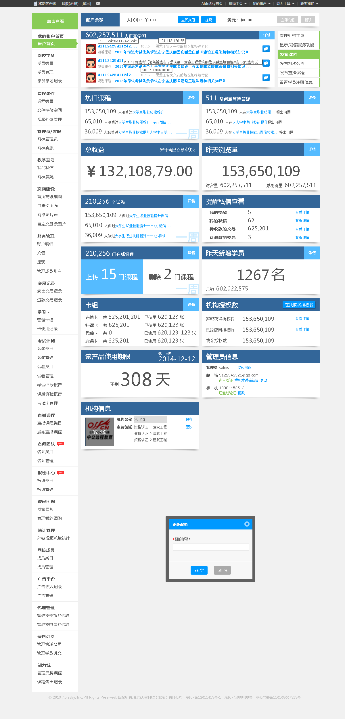 新后臺將以前凌亂的管理功能分類重新梳理清楚了,同時更加注重網(wǎng)校運營數(shù)據(jù)提取和展示,讓網(wǎng)校管理更清晰和深入。