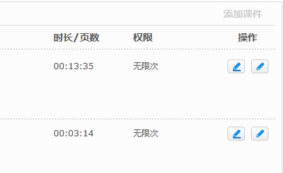 2、課件章節(jié)管理位置為:課程詳情---編輯課程課件---課件編輯按鈕,點(diǎn)擊課件編輯按鈕(列表后邊的第一個筆型圖標(biāo))