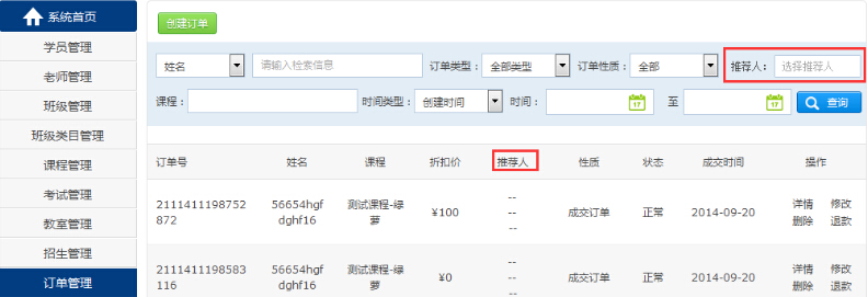3 訂單管理中,增加了“推薦人”一項(xiàng),管理員可以了解該訂單的推薦人信息了