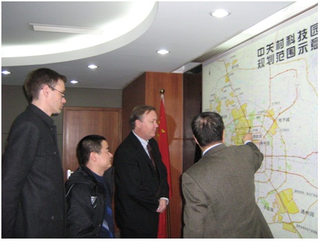 中關(guān)村夏主任為Mark、英明、John講解中關(guān)村科技園的規(guī)劃圖
