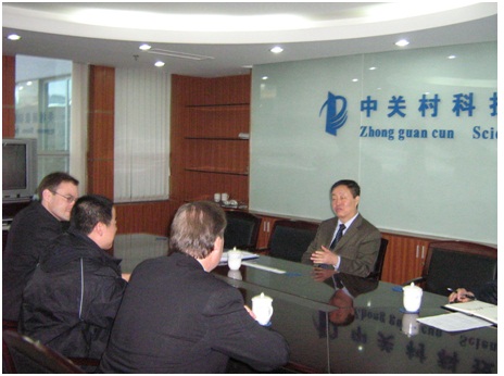 與中關(guān)村領(lǐng)導(dǎo)深入討論,夏主任(加拿大博士)面對(duì)以英語為母語的來訪者,展現(xiàn)他的英語才華