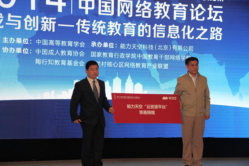 延續(xù)首屆中國(guó)網(wǎng)絡(luò)教育論壇的教育公益行動(dòng),在陶行知教育基金會(huì)執(zhí)行會(huì)長(zhǎng)崔祖瑛做了題為“教育的進(jìn)步”主題報(bào)告后,能力天空現(xiàn)場(chǎng)通過(guò)陶行知教育基金會(huì)向400所高等院校及中小學(xué)捐贈(zèng)了價(jià)值千萬(wàn)的能力天空網(wǎng)校平臺(tái)與精品課程,使高質(zhì)量的教育資源實(shí)現(xiàn)更大范圍的共享,推動(dòng)高等教育和基礎(chǔ)教育與信息化的深度融合。