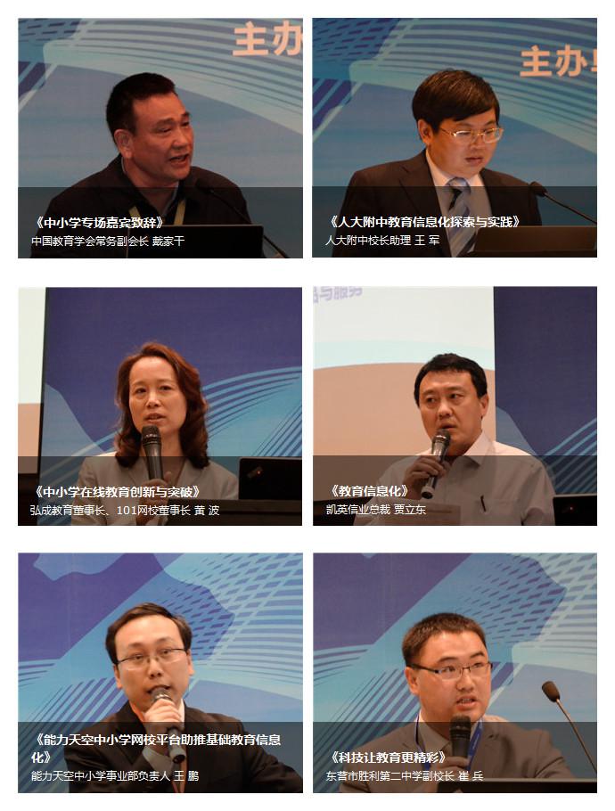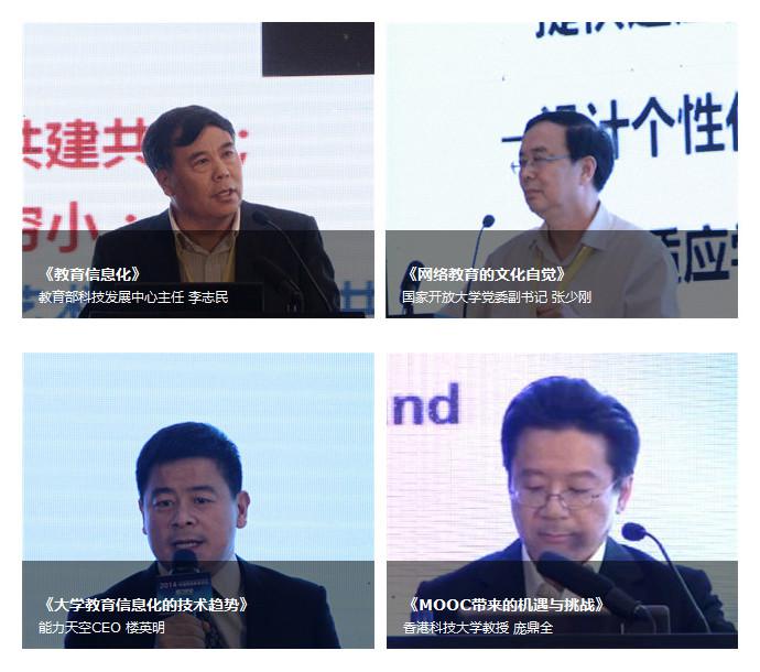 5月14日下午高校專場(chǎng)和中小學(xué)專場(chǎng)分別就MOOCs熱潮下傳統(tǒng)高校的挑戰(zhàn)與創(chuàng)新、基礎(chǔ)教育的信息化創(chuàng)新與資源共享等內(nèi)容進(jìn)行了探討。高校專場(chǎng)上,教育部科技發(fā)展中心主任李志民、國(guó)家開(kāi)放大學(xué)黨委副書記張少剛、香港科技大學(xué)教授龐鼎全分別就MOOC的全球風(fēng)潮及現(xiàn)代高等教育面臨的機(jī)遇和挑戰(zhàn)等話題進(jìn)行了討論;同時(shí)開(kāi)展的中小學(xué)專場(chǎng)上,中國(guó)教育學(xué)會(huì)常務(wù)副會(huì)長(zhǎng)戴家干、人大附中校長(zhǎng)助理王軍、弘成101網(wǎng)校董事長(zhǎng)黃波、東營(yíng)市勝利第二中學(xué)校長(zhǎng)王濤等共同分享了“翻轉(zhuǎn)課堂”的國(guó)際發(fā)展?fàn)顩r、國(guó)內(nèi)基礎(chǔ)教育目前所做的嘗試和成就等,并對(duì)互聯(lián)網(wǎng)環(huán)境下基礎(chǔ)教育的未來(lái)發(fā)展進(jìn)行了展望。能力天空中小學(xué)事業(yè)部負(fù)責(zé)人針對(duì)能力天空中小學(xué)網(wǎng)校平臺(tái)系統(tǒng)功能進(jìn)行了詳細(xì)的介紹。