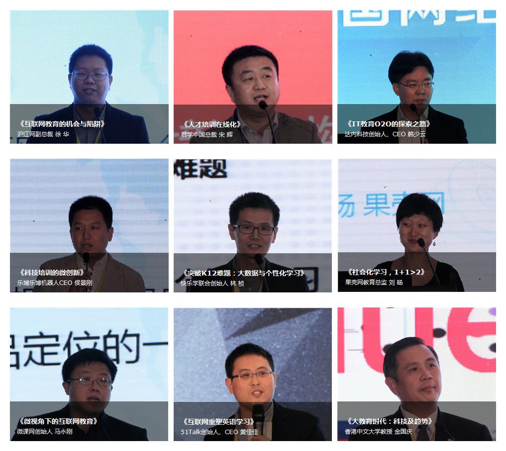 5月15日進(jìn)行的培訓(xùn)機(jī)構(gòu)與在線教育創(chuàng)業(yè)專場(chǎng)上,吸引了在線教育界的眾多知名人士加入,如達(dá)內(nèi)科技CEO韓少云、滬江網(wǎng)副總裁徐華、快樂(lè)學(xué)聯(lián)合創(chuàng)始人林楨、果殼網(wǎng)教育總監(jiān)劉旸、微課網(wǎng)創(chuàng)始人馬永剛、51TALK創(chuàng)始人黃佳佳、香港中文大學(xué)教授金國(guó)慶等,他們分別就網(wǎng)絡(luò)教育國(guó)內(nèi)現(xiàn)狀及發(fā)展趨勢(shì)等進(jìn)行了探討。天使投資人戴志康就在線教育投資創(chuàng)業(yè)機(jī)會(huì)進(jìn)行了分析和點(diǎn)評(píng)。