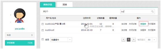 其次, 在學(xué)員管理頁(yè)面中把練習(xí)庫(kù)發(fā)給學(xué)員/或班級(jí)(與發(fā)試卷類(lèi)似);學(xué)員就可以進(jìn)行多次隨機(jī)抽題練習(xí)啦!