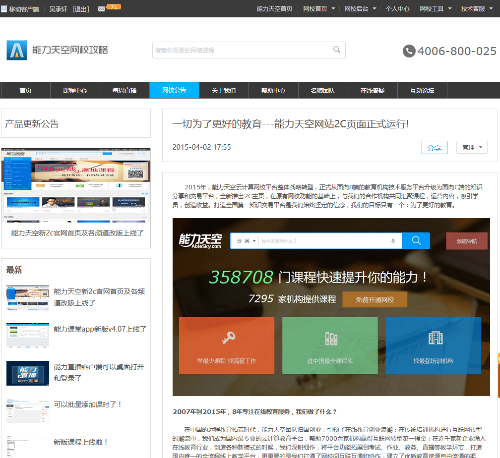 網(wǎng)校公告頻道改版上線了