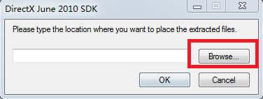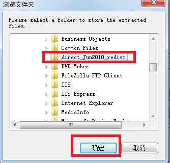 4) 點(diǎn)擊“Browse”,選擇解壓目錄文件夾(一定要方便查找的路徑,下面會(huì)用到,此處以direct_Jun2010_redist為例)