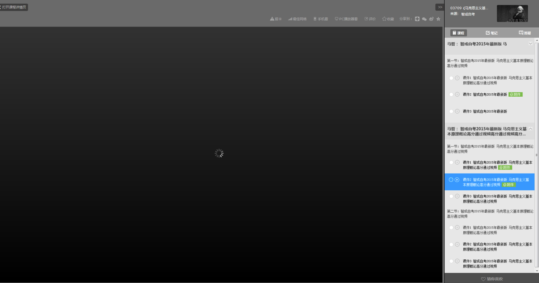 4.播放頁面添加課件補(bǔ)充資料下載入口,方便學(xué)員在觀看時下載附件,課件標(biāo)題最多顯示2行,章的內(nèi)容可展開收起。