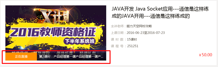 2、直播課堂詳情頁,同樣加了課時安排的設計哦!