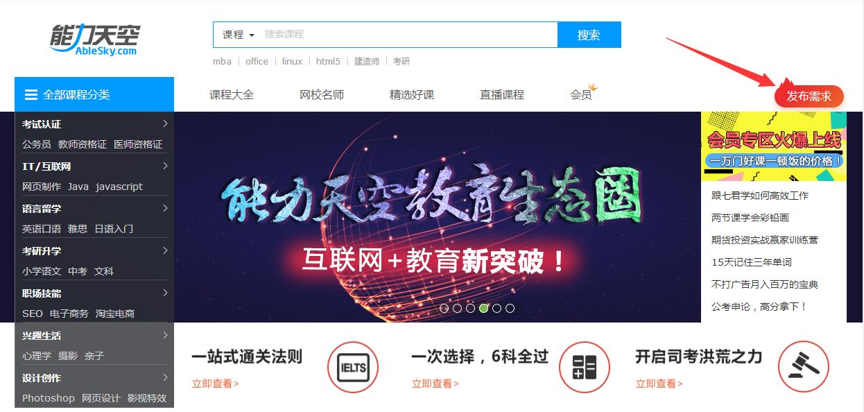 PS:學員發(fā)布需求在能力天空首頁的右上方噢!