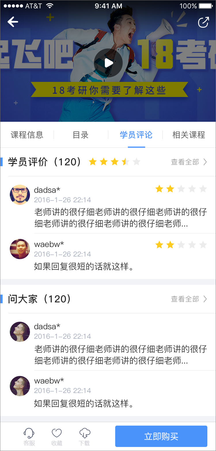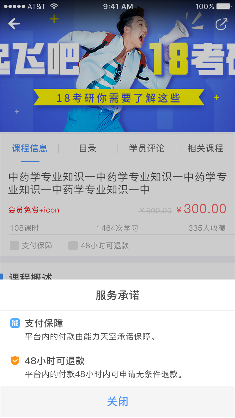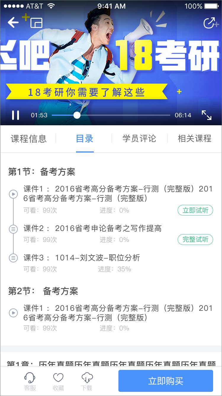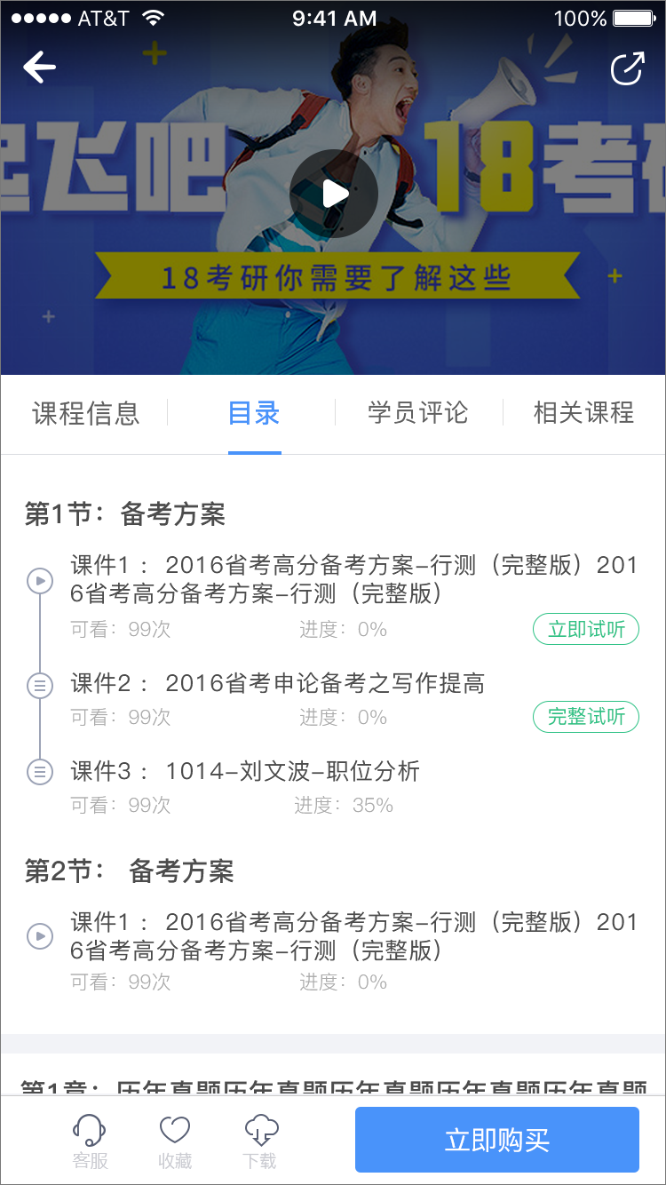 未購買/開通的收費(fèi)課程播放試聽,免費(fèi)課從第一個音視頻課件開始播放,已購買/開通課程從上次離開位置續(xù)播。