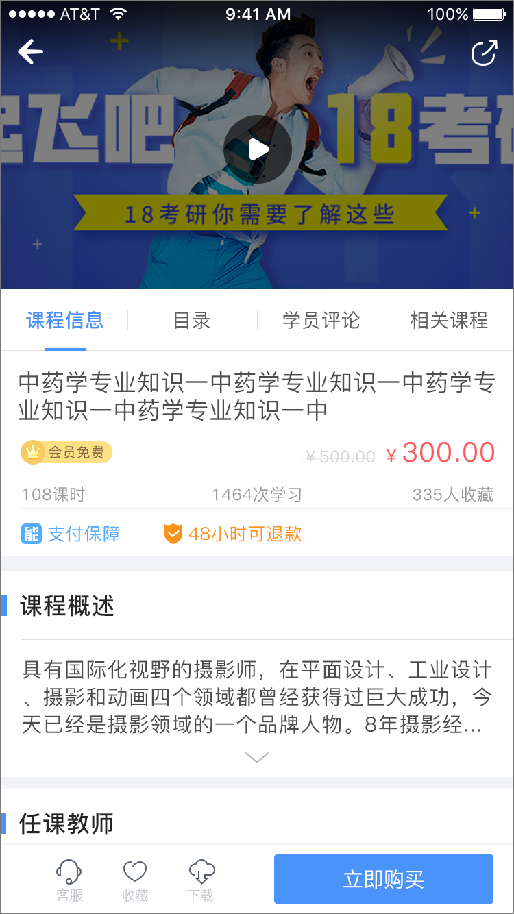 1. 課程詳情頁可點(diǎn)擊圖片區(qū)域或下方“開始學(xué)習(xí)”按鈕,在詳情頁開始學(xué)習(xí)。