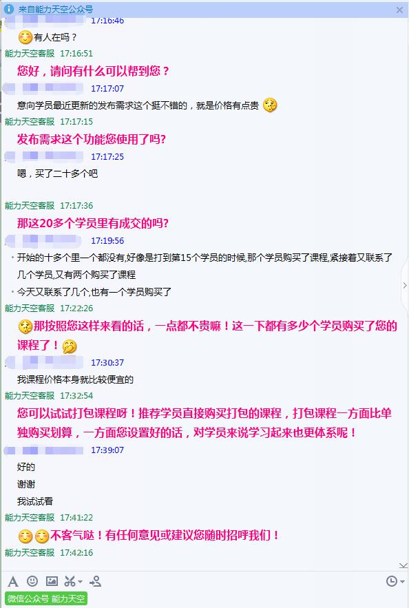 只是隨便的聯(lián)系了一些學(xué)員,就有學(xué)員成功購買了,意料之外的收貨,就是意向?qū)W員帶來的噢~~![]()