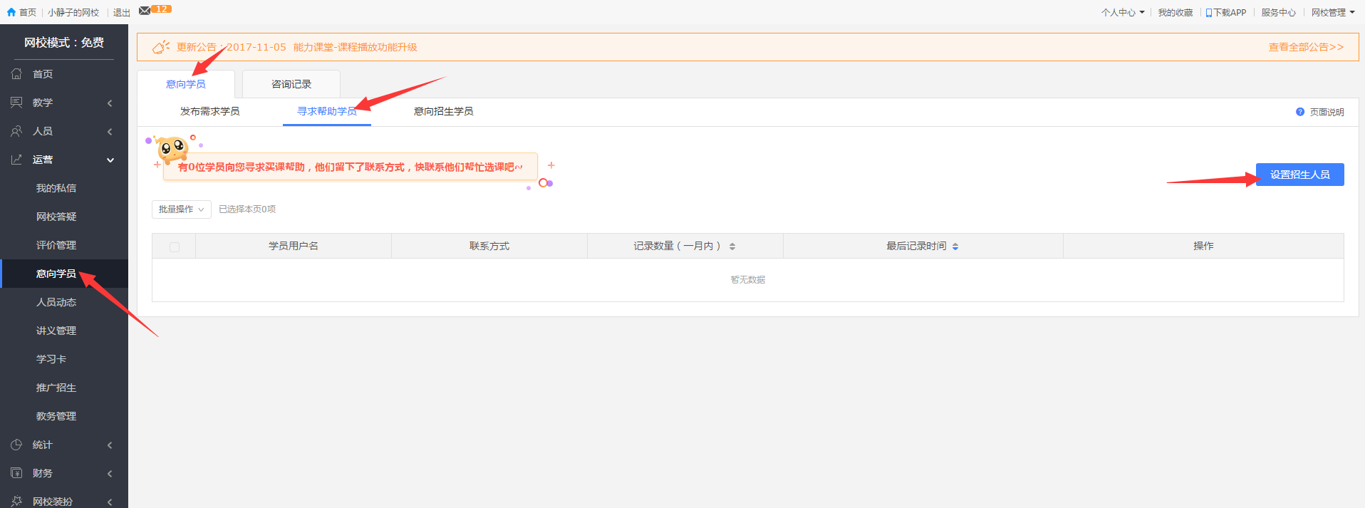 網(wǎng)校后臺(tái)-運(yùn)營(yíng)-意向?qū)W員-尋求幫助學(xué)員
