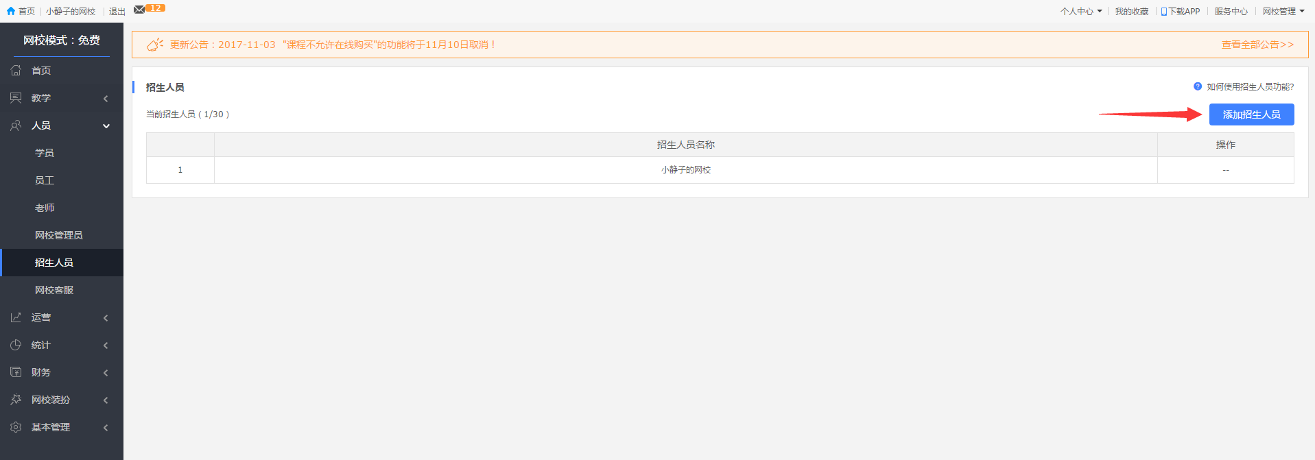 1.目標(biāo)位置:網(wǎng)校后臺(tái)-人員-招生人員