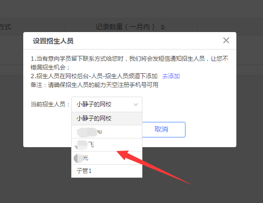 注意是選擇哦~只能從已設(shè)置好的招生人員中選擇一名~;