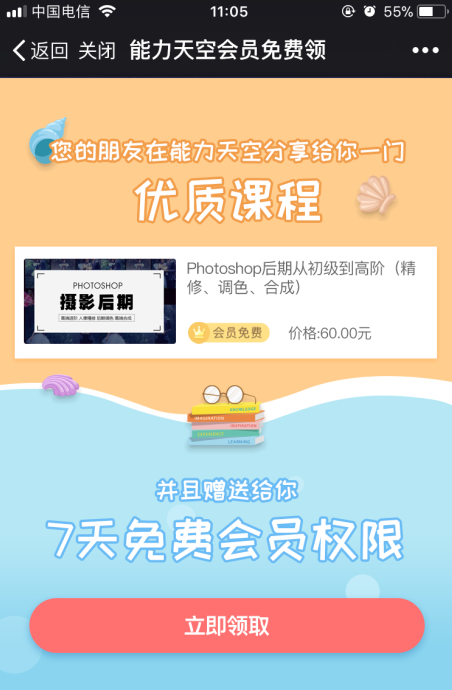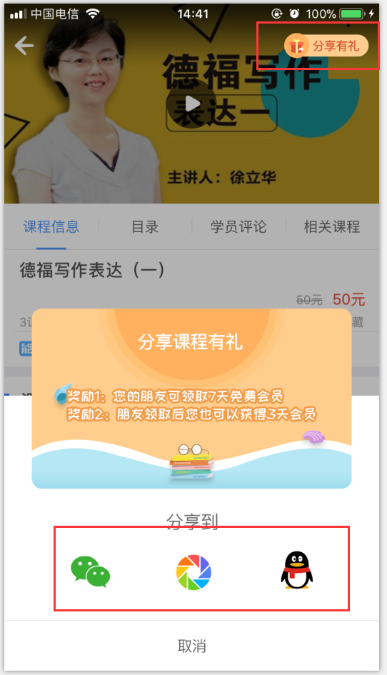 - 在你的能力天空APP、網(wǎng)校課堂APP課程詳情頁把課程分享出去