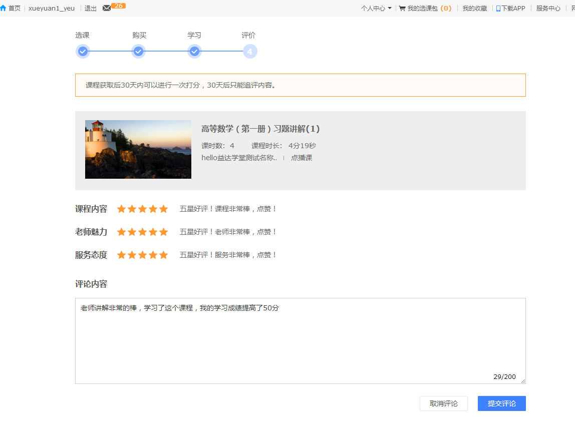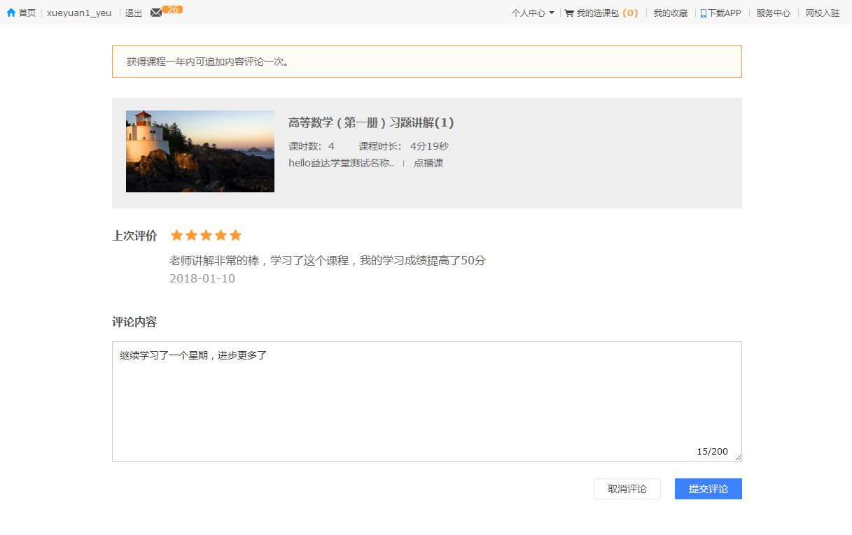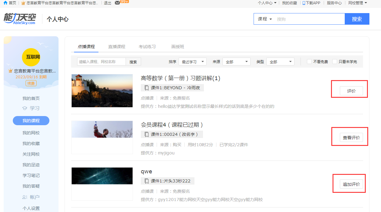 1、課程評價的對象從針對課件變成了針對課程,支持對點播課、網(wǎng)絡班、預售班的評價,評價的內容更有針對性,能幫助新學員更加省時省力找到優(yōu)質課程。