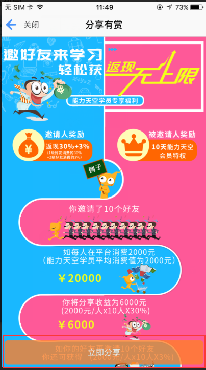 而且,好友同樣再次分享的好友在能力天空消費課程的3%的收益,也將歸你所有!