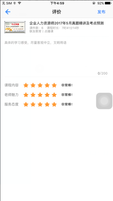 - 2、課程評(píng)價(jià)的維度更加豐富,從原來(lái)的1-5星評(píng)價(jià)升級(jí)為針對(duì)課程內(nèi)容、老師魅力、網(wǎng)校服務(wù)的三個(gè)維度評(píng)價(jià)課程,讓你充分表達(dá)自己的學(xué)習(xí)感受