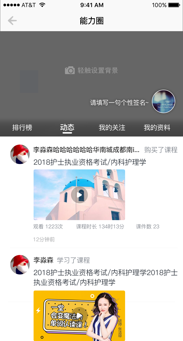 查看我及我關(guān)注的人最近都在學習什么課程。