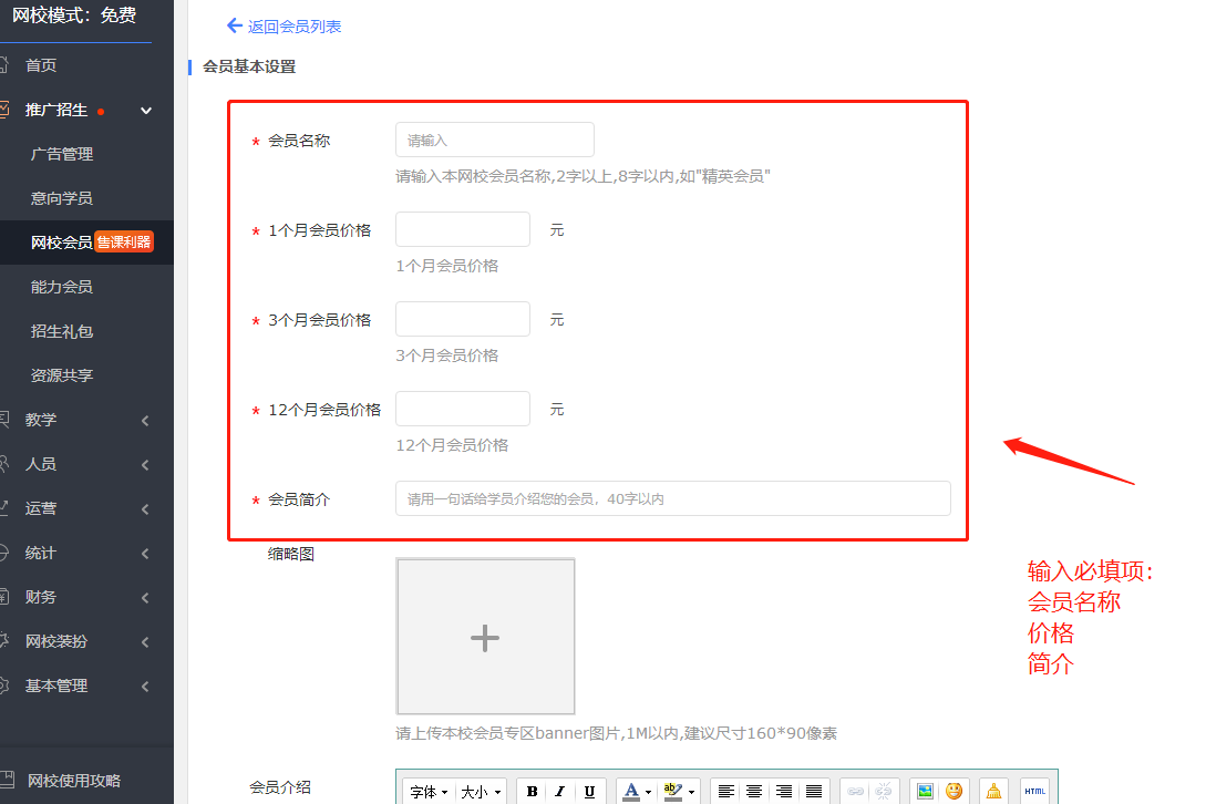 ①通過“網校會員設置”設置會員名稱與價格。