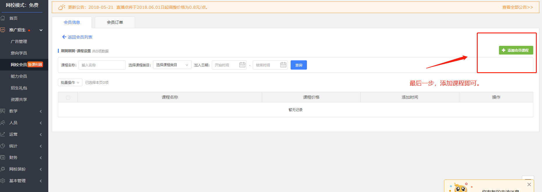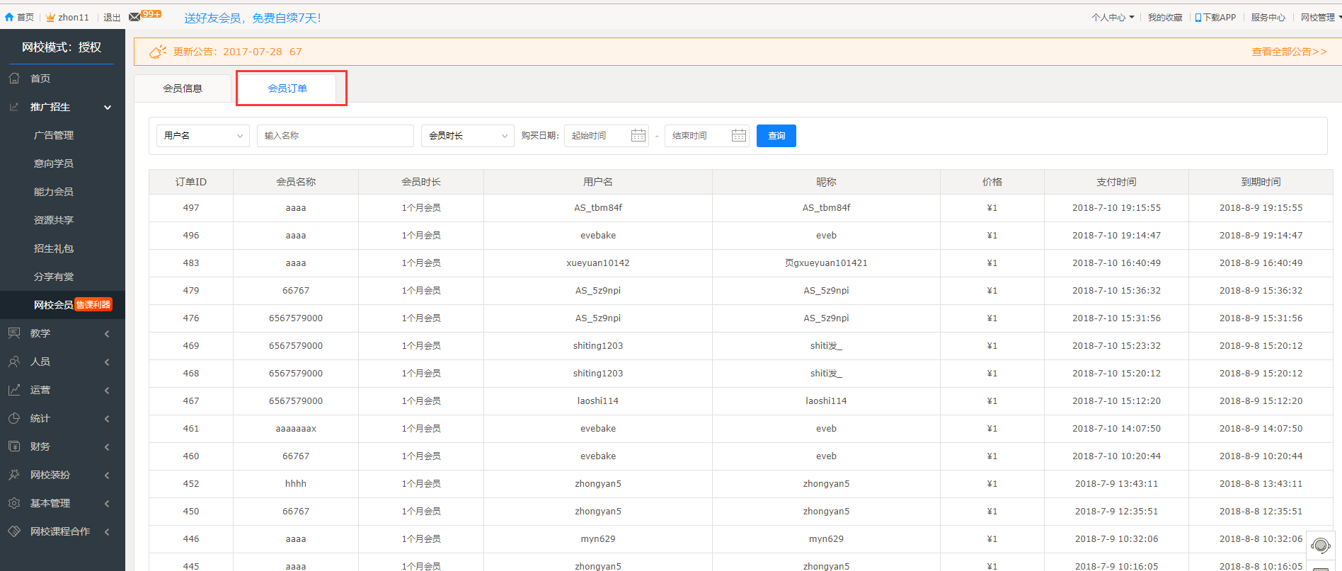 一、網校后臺-推廣招生-網校會員