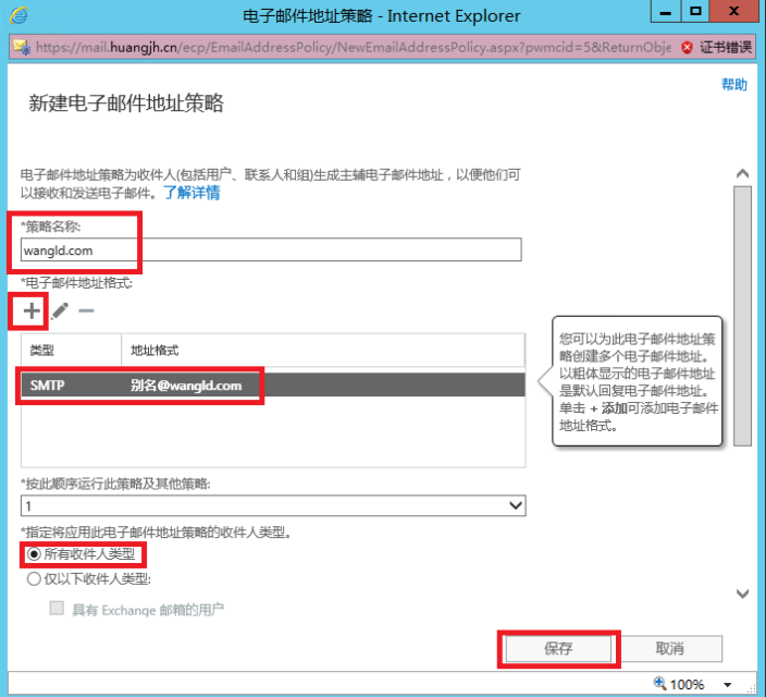 輸入策略名稱---新建電子郵件地址格式----可以自定義規(guī)則。點擊“保存”如圖6