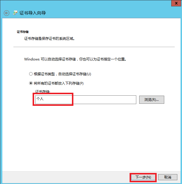 將證書存儲在“個人”,“下一步”------點(diǎn)擊“完成”,如圖7