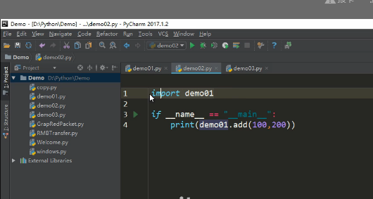 import demo01 調(diào)用demo01里面的程序