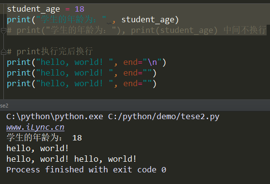 # print("學(xué)生的年齡為:"),print(student_age)中間不換行