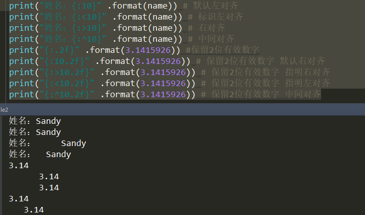 print("姓名:{:^10}" .format(name)) #中間對齊