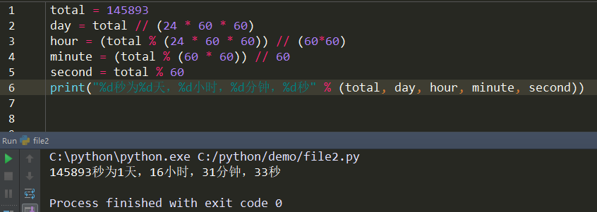 示例1:編程實(shí)現(xiàn)145893秒是幾天幾小時(shí)幾分鐘幾秒鐘?