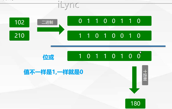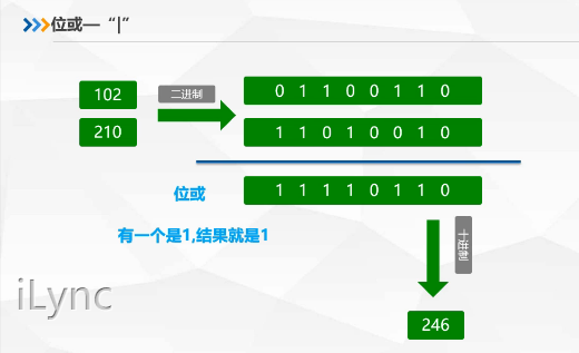 print(102 | 210) #對應(yīng)的二進制數(shù)有一個是1結(jié)果才是1