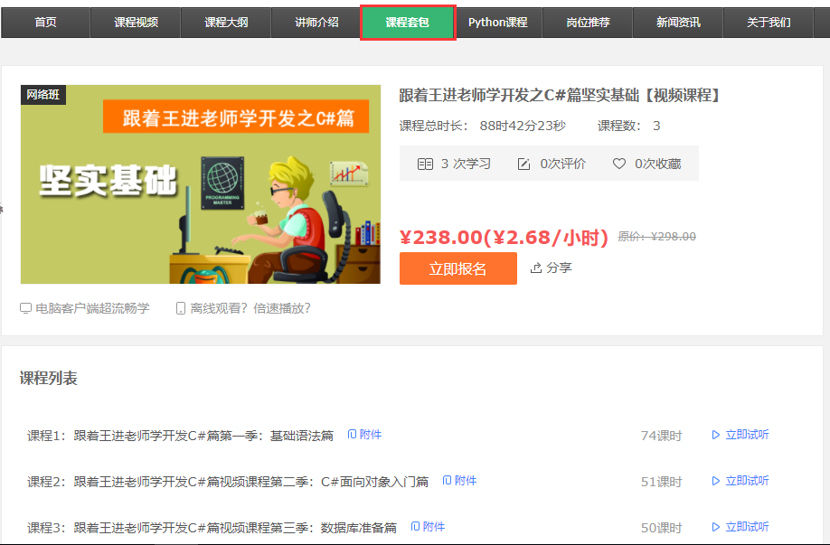 點擊“立即報名”即可享受超低價格的課程視頻;
