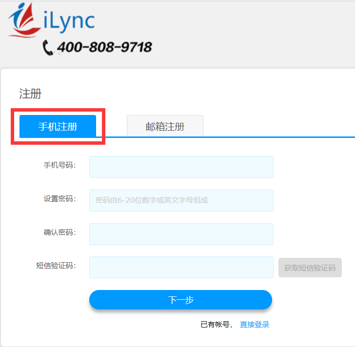 打開網(wǎng)址:www.iLync.cn 點擊“免費注冊”,進入注冊頁面;